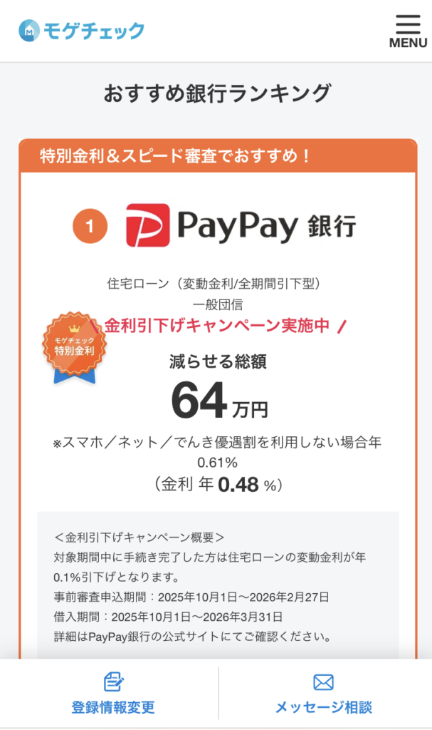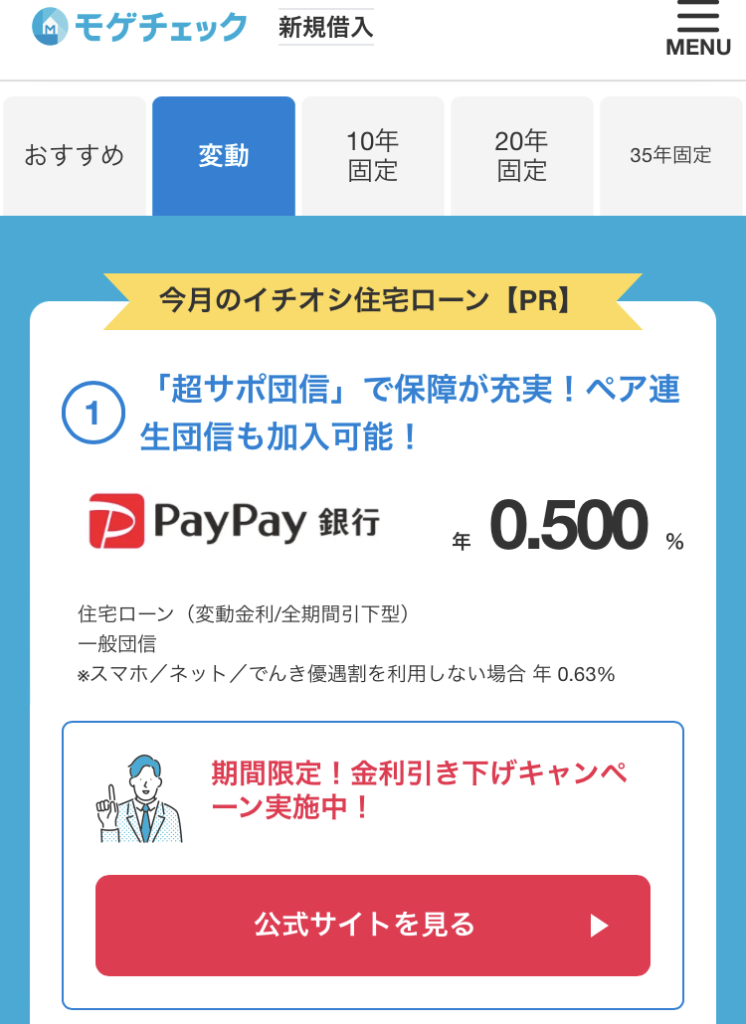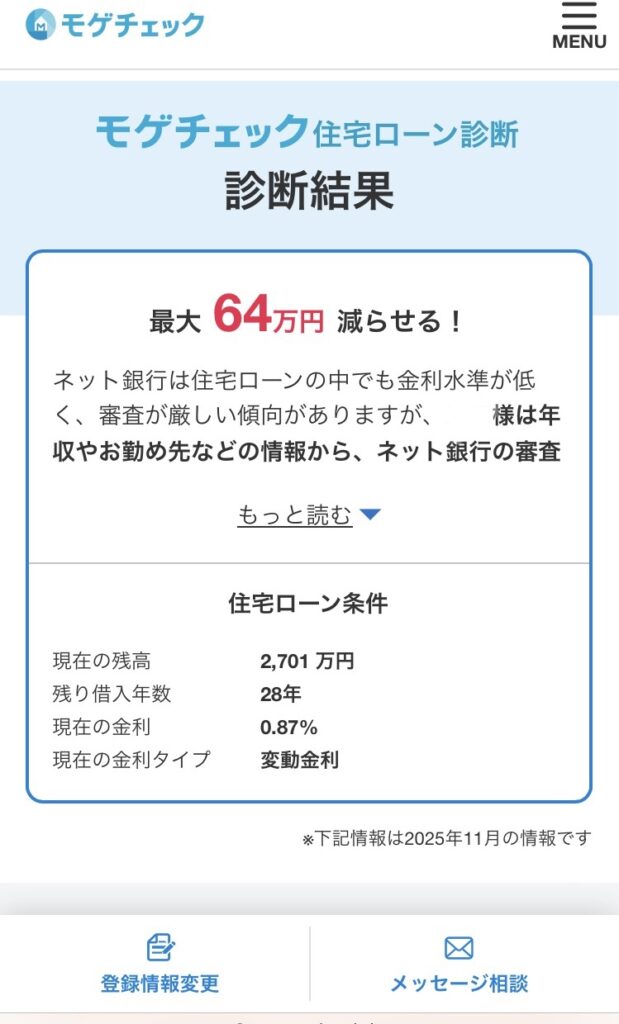 モゲチェックで住宅ローンを診断しました。