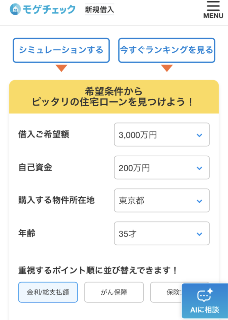 希望条件にあった住宅ローンのランキングをすぐに提示してくれます✨